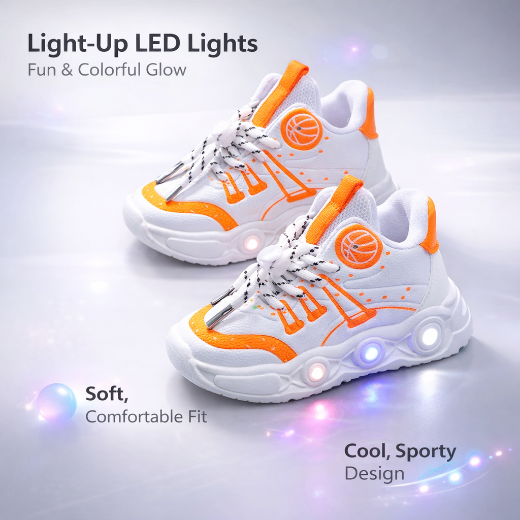 Adidasii albi cu insertii portocalii sunt ideali pentru copii activi care adora sa alerge, sa danseze si sa se joace. Fabricati din material tip piele ecologica, sunt rezistenti si usor de curatat. Inchiderea cu sireturi ajustabile permite reglarea perfecta pe picior, oferind stabilitate si siguranta.