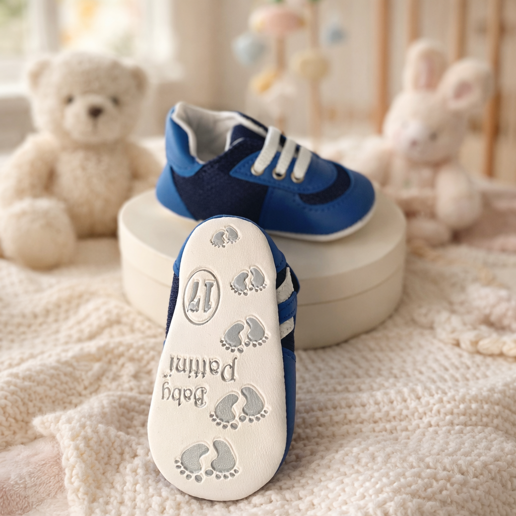 Adidasii pentru bebe Pattini baieti in nuante albastru inchis cu albastru deschis sunt alegerea perfecta pentru un look vesel si modern. Designul simplu, dar atractiv, ii face usor de asortat in orice tinuta de zi cu zi.