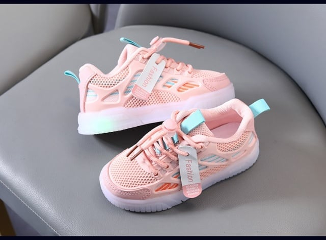 Adidasi pentru fete cu luminite LED, ideali pentru micutele active care iubesc culorile si modelele jucause.