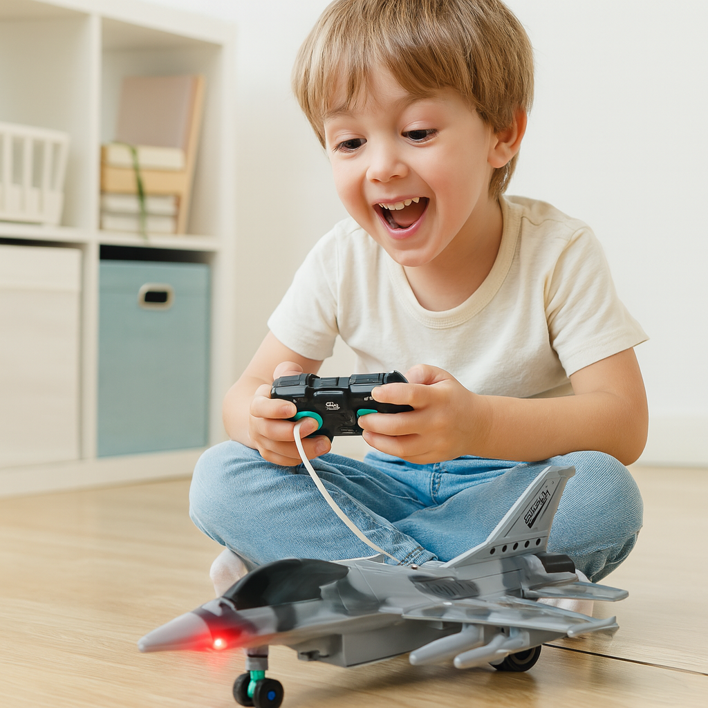 Dezvolta imaginatia: copilul devine „pilot” si poate inventa propriile misiuni si aventuri.