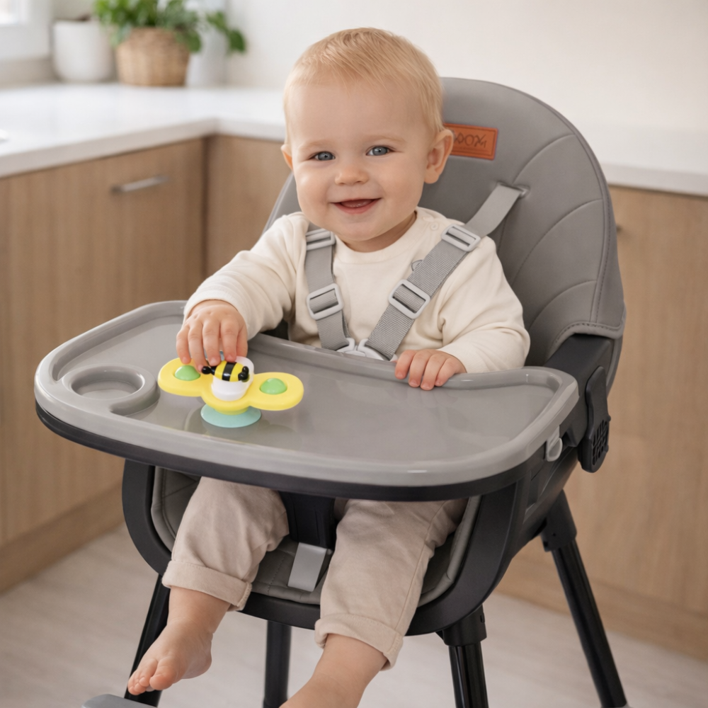 MoMi REKI este un scaun de masa multifuncțional care vă va fi însoțitor din momentul în care decideți să extindeți dieta copilului până la vârsta grădiniței.