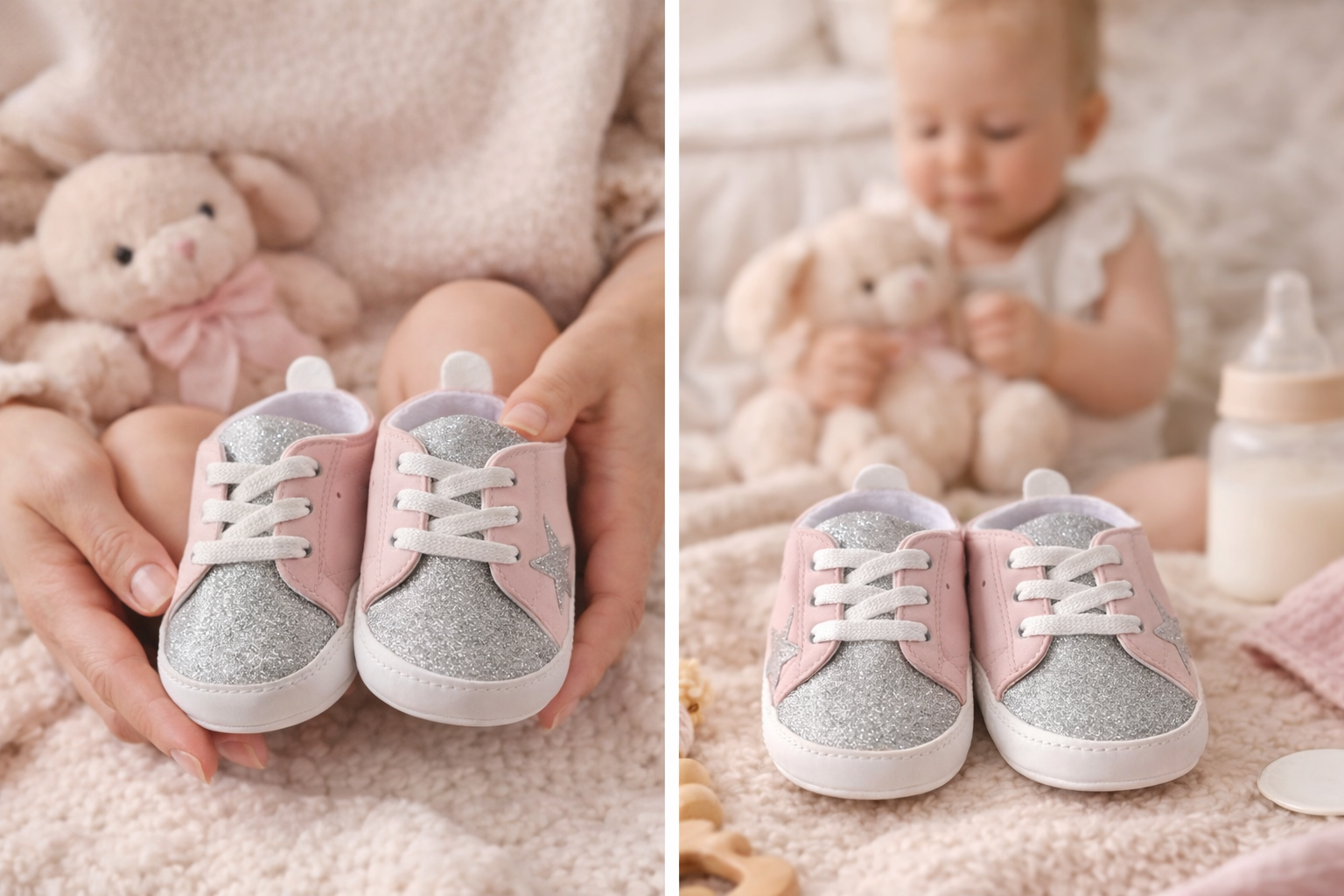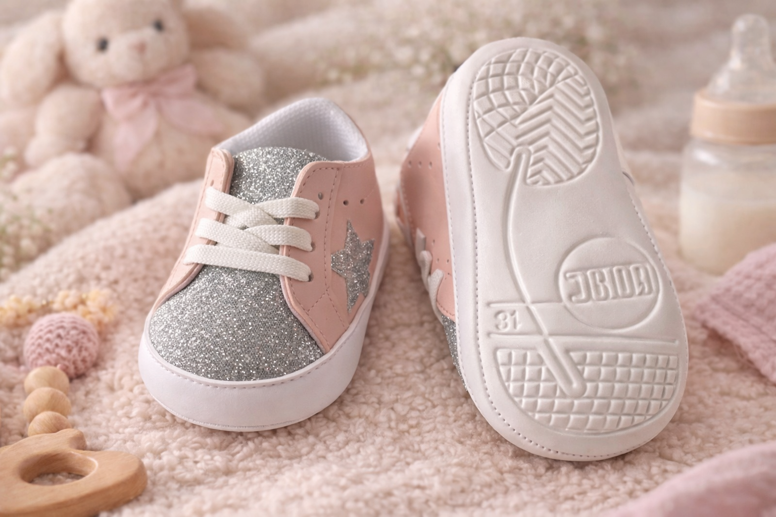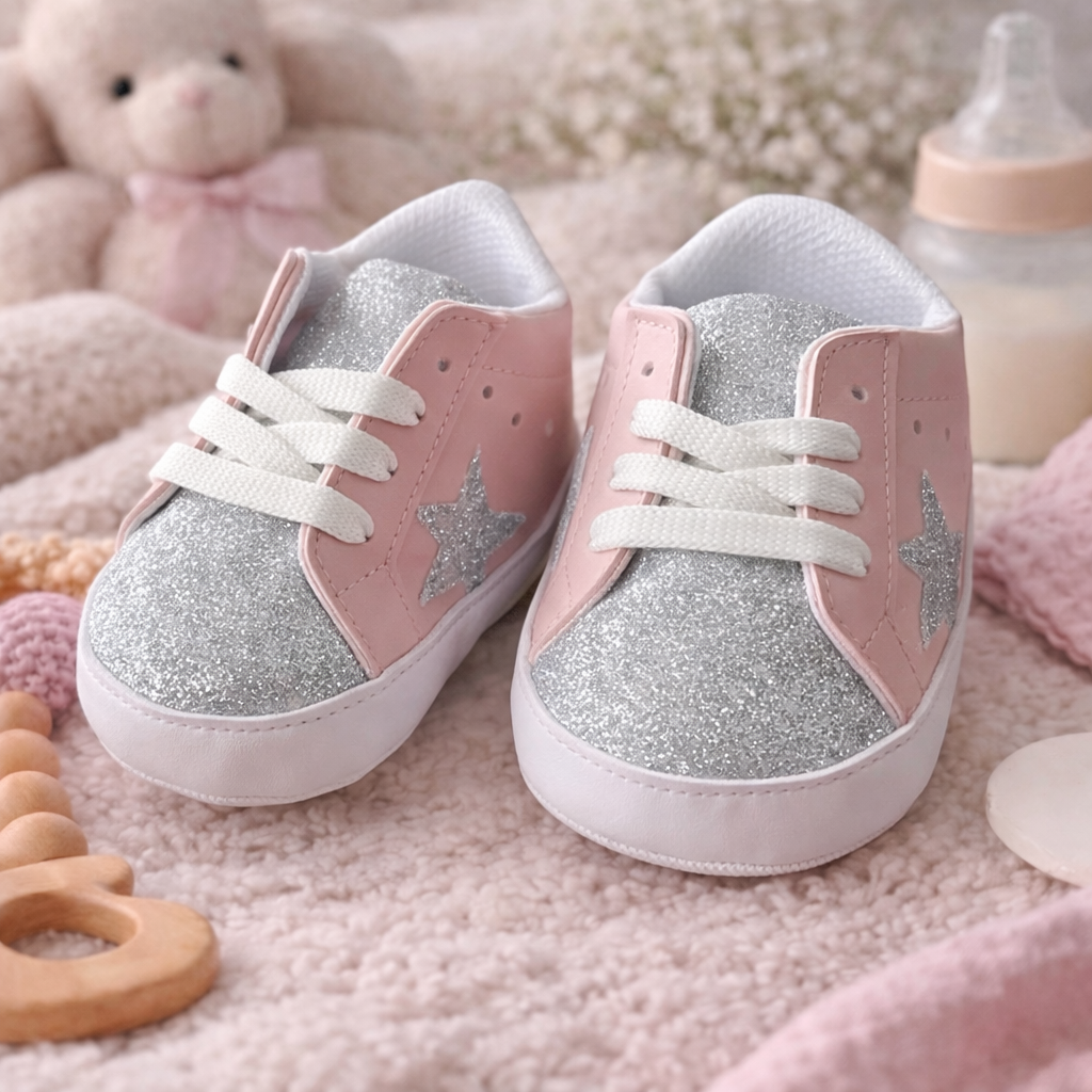 Botosei sport pentru bebelusi cu design modern si elegant, in nuanta argintie cu efect sclipici, marca BOAC, ideali pentru tinute speciale sau purtare zilnica. Modelul este realizat din materiale moi si confortabile, potrivite pentru pielea sensibila a bebelusilor.