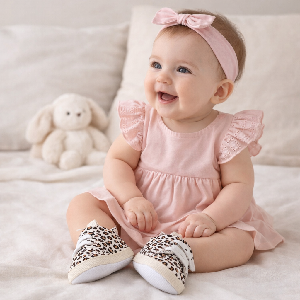 Pantofii pentru bebelusi Leoncino sunt special conceputi pentru confortul si protectia picioarelor in primele luni de viata. Designul modern cu imprimeu leopard ofera un aspect atractiv, potrivit atat pentru tinute casual, cat si pentru iesiri speciale.