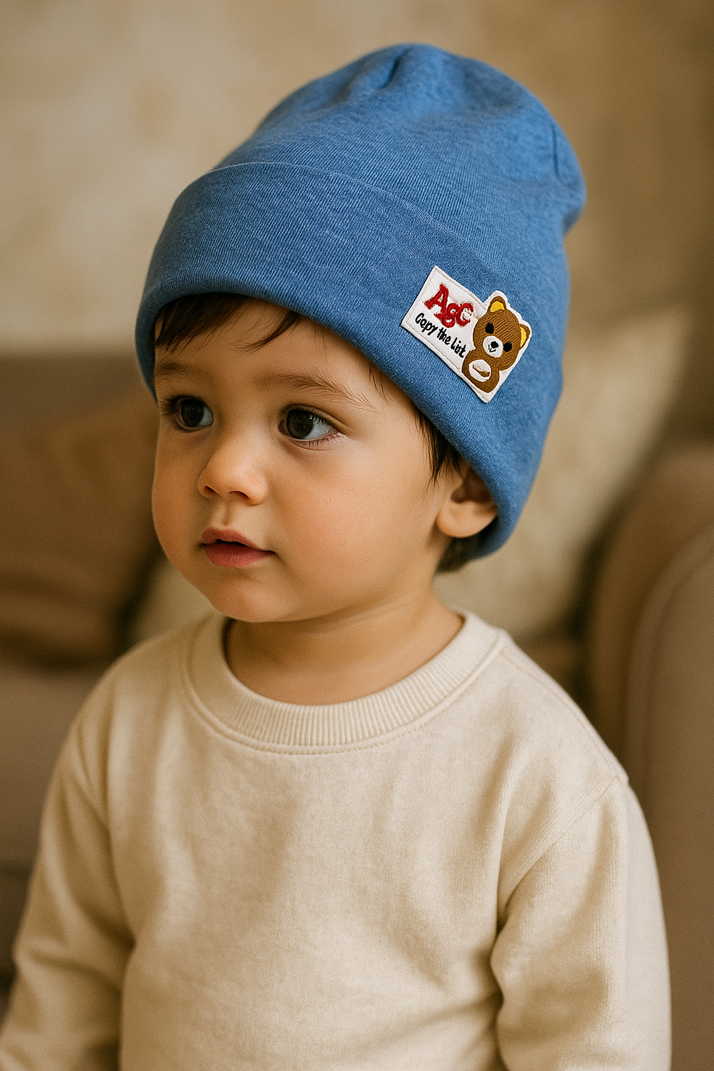 Caciula ABC pentru copii este realizata dintr-un material moale, placut la atingere si confortabil pentru pielea sensibila a celor mici. Fiind usoara si elastica, se aseaza bine pe cap, oferind protectie si caldura, fara a strange sau a incomoda. Culoarea albastru deschis este usor de asortat cu orice tinuta, iar aplicatia decorativa cu ursulet adauga o nota jucausa si prietenoasa.