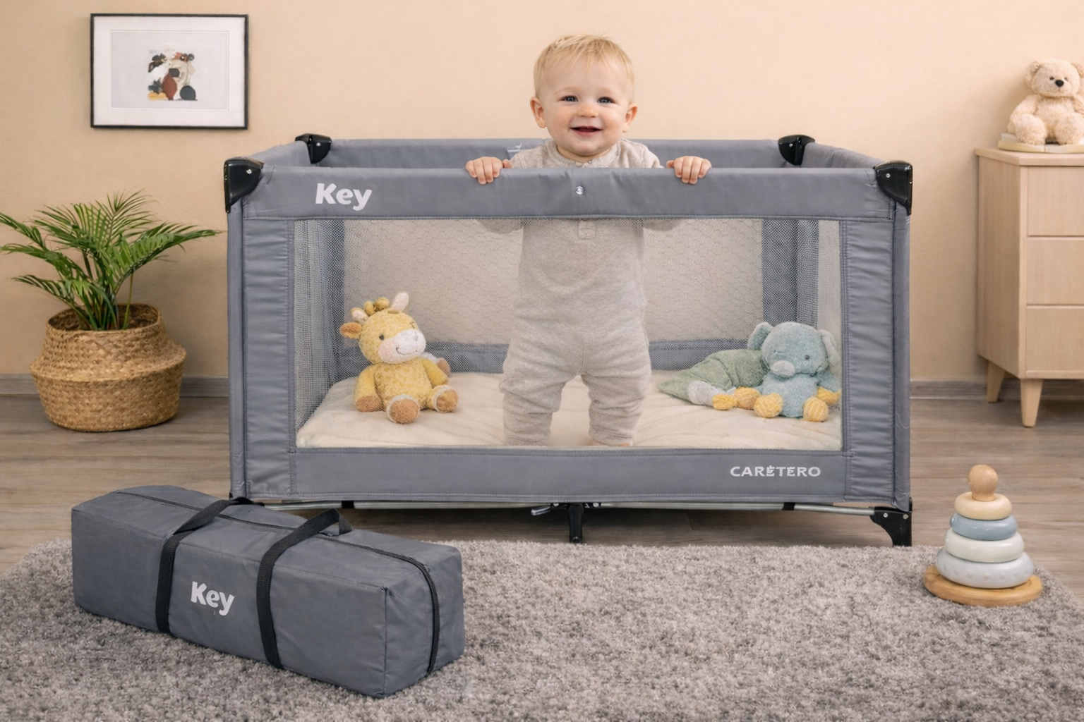 Patutul de calatorie KEY este o solutie buna pentru calatorii si pentru acasa. Patutul are o structura simpla si solida care, combinata cu usurinta in utilizare si greutatea redusa a produsului, functioneaza foarte bine in orice situatie. Patutul este echipat cu o saltea de 120x60 cm si o geanta de transport, perfecte pentru conditii turistice.