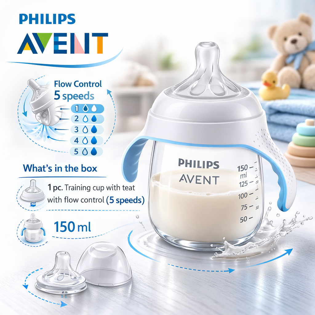 Deschiderea tetinei este proiectata astfel incat lichidul sa curga doar atunci cand copilul suge activ, prevenind varsarea accidentala.