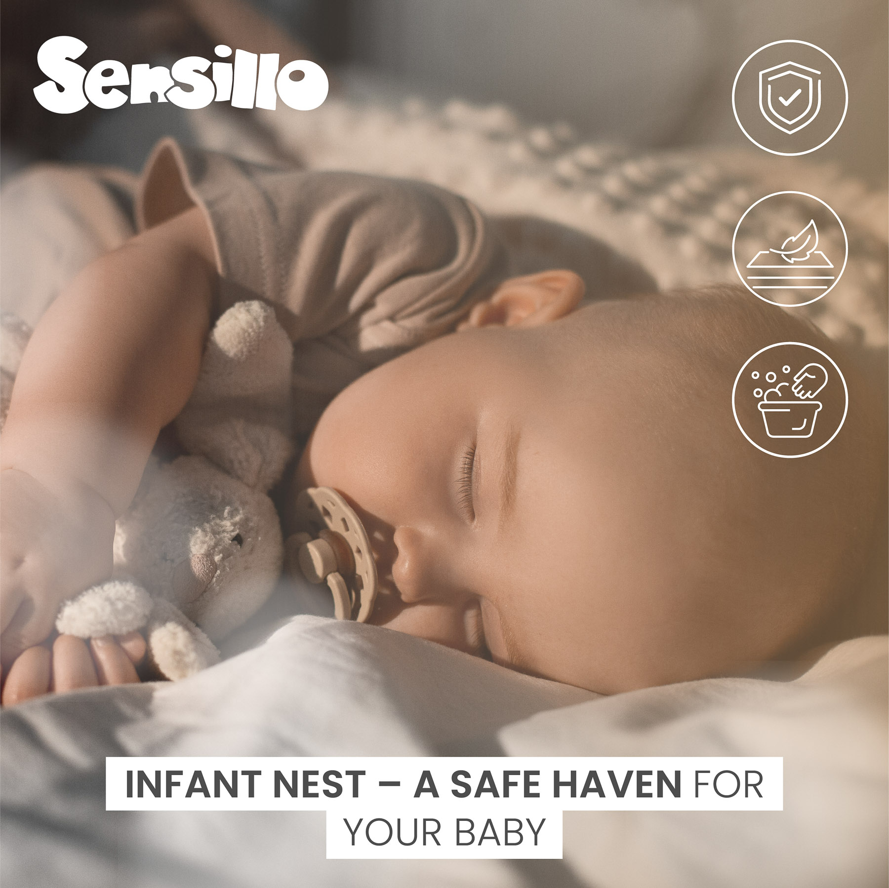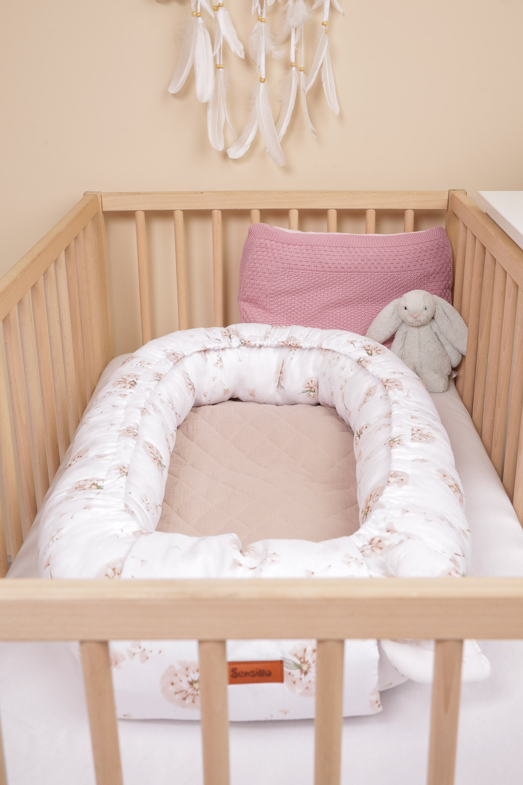 Marginile inalte protejeaza bebelusul impotriva rostogolirii sau caderii accidentale. Umplutura antialergica din bile de silicon si materialele delicate, prietenoase cu pielea sensibila a nou-nascutului, contribuie la un mediu sanatos si un somn linistit.