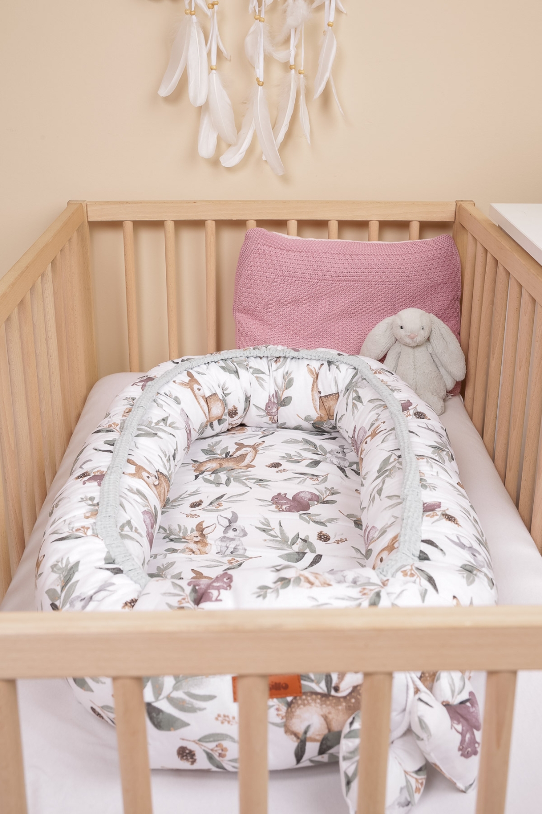 Produsul este realizat in Polonia, cu atentie la detalii si calitate, avand un design atractiv Deers Mint, potrivit atat pentru fetite, cat si pentru baietei. Setul include si pernuta asortata, cu acelasi model ca si cuibul, pentru un aspect unitar.