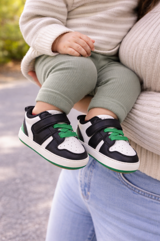 Primii pasi trebuie sa fie siguri si comozi iar acesti adidasi sunt creati special pentru asta. Cu un design modern si detalii in alb, negru si verde, sunt ideali pentru micutii energici care incep sa descopere lumea pas cu pas.