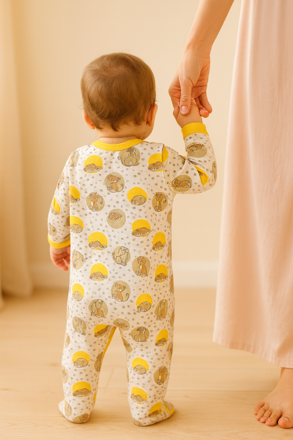 Fabricata din bumbac 100%, ofera protectie delicata pentru pielea sensibila a bebelusului. Este usor de imbracat datorita capselor plasate de-a lungul corpului si are botosei integrati – ideali pentru zilele mai racoroase.