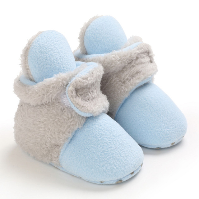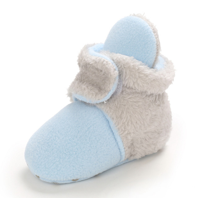 Cizmulite pentru baietei, din material plusat, imblanite, se inchid cu bareta lata cu arici.