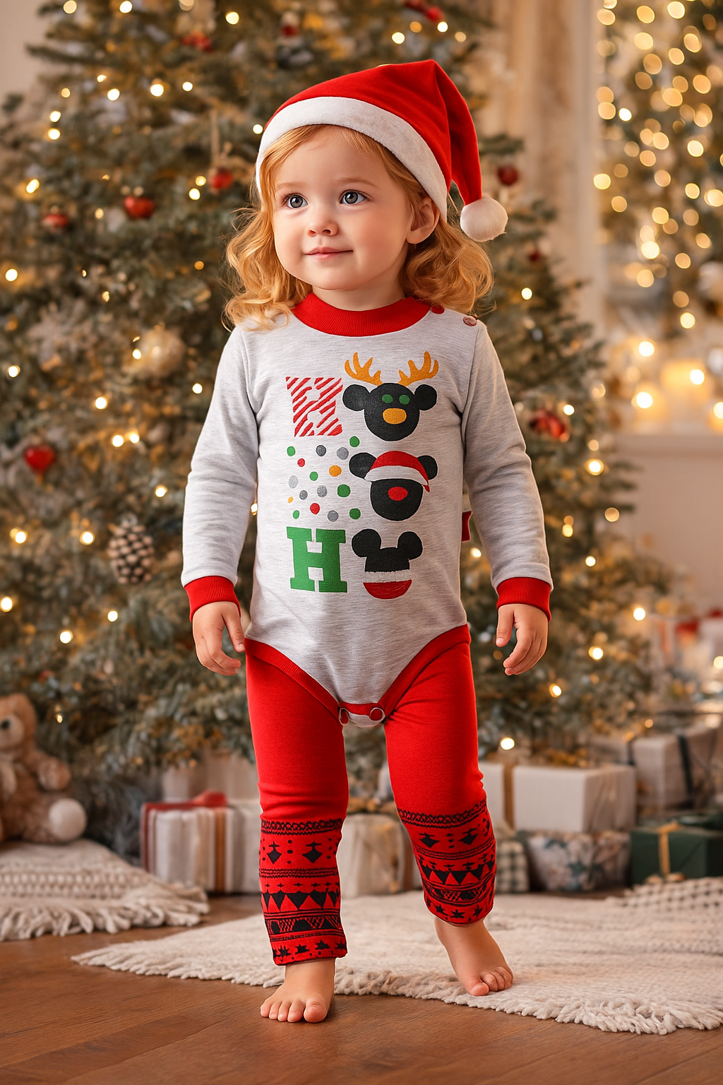 Am pregătit un compleu perfect pentru a sărbători Crăciunul în stil. Acest compleu de Crăciun este format dintr-un body cu deschidere în capse pe umăr pentru o îmbrăcare ușoară și comodă, fes cu ciucure și pantaloni asortați. Este realizat din material 100% bumbac, care este moale și are o textură flaușată la interior pentru a menține micuțul confortabil și călduros în zilele reci de iarnă.