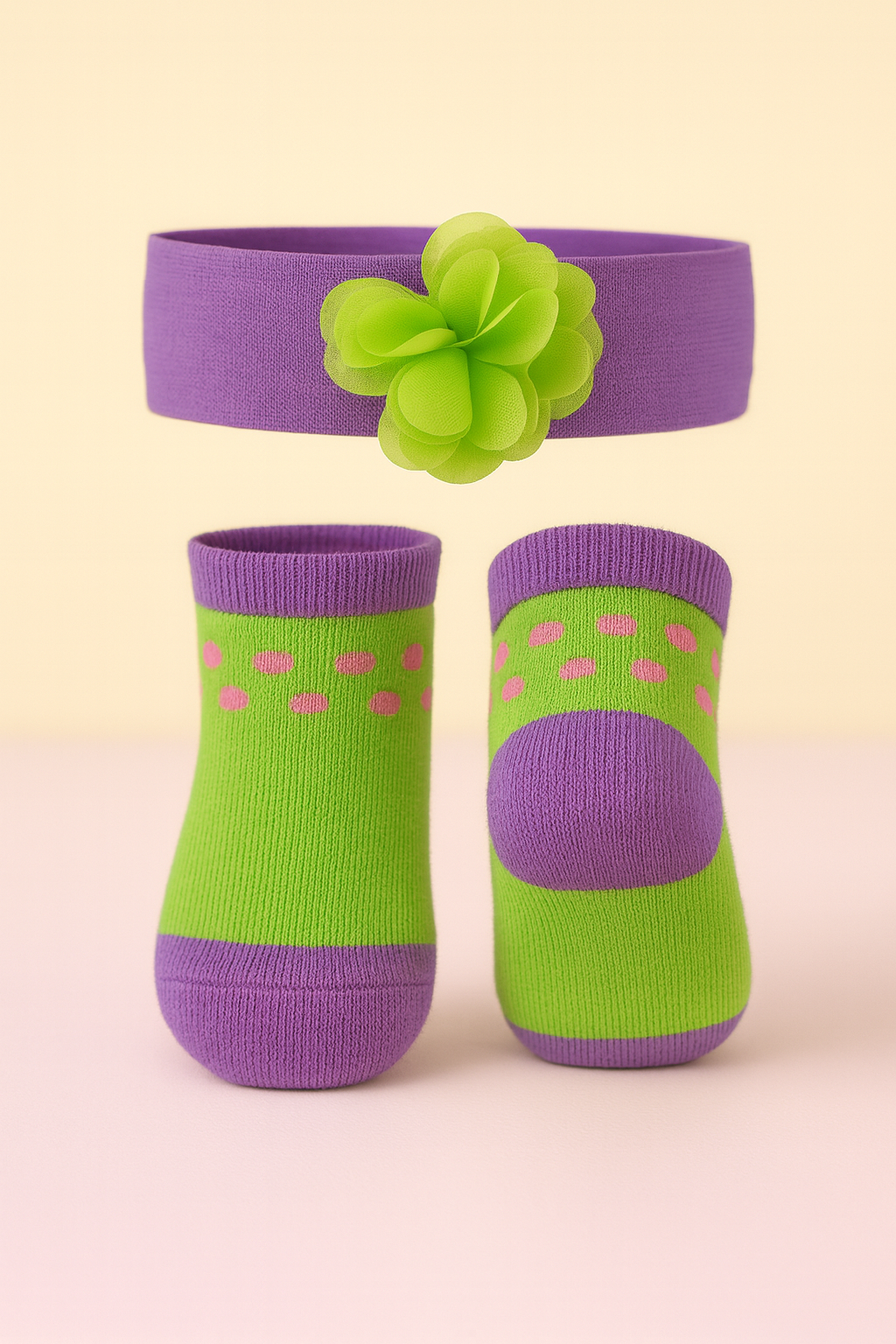 Dragi părinți, acest set compus din șosete și bentiță este alegerea perfectă pentru a adăuga un strop de rafinament și confort ținutelor zilnice ale bebelușului vostru. Fie că mergeți la o plimbare, un botez sau o ședință foto, combinația dintre stil și funcționalitate va cuceri toate privirile.
