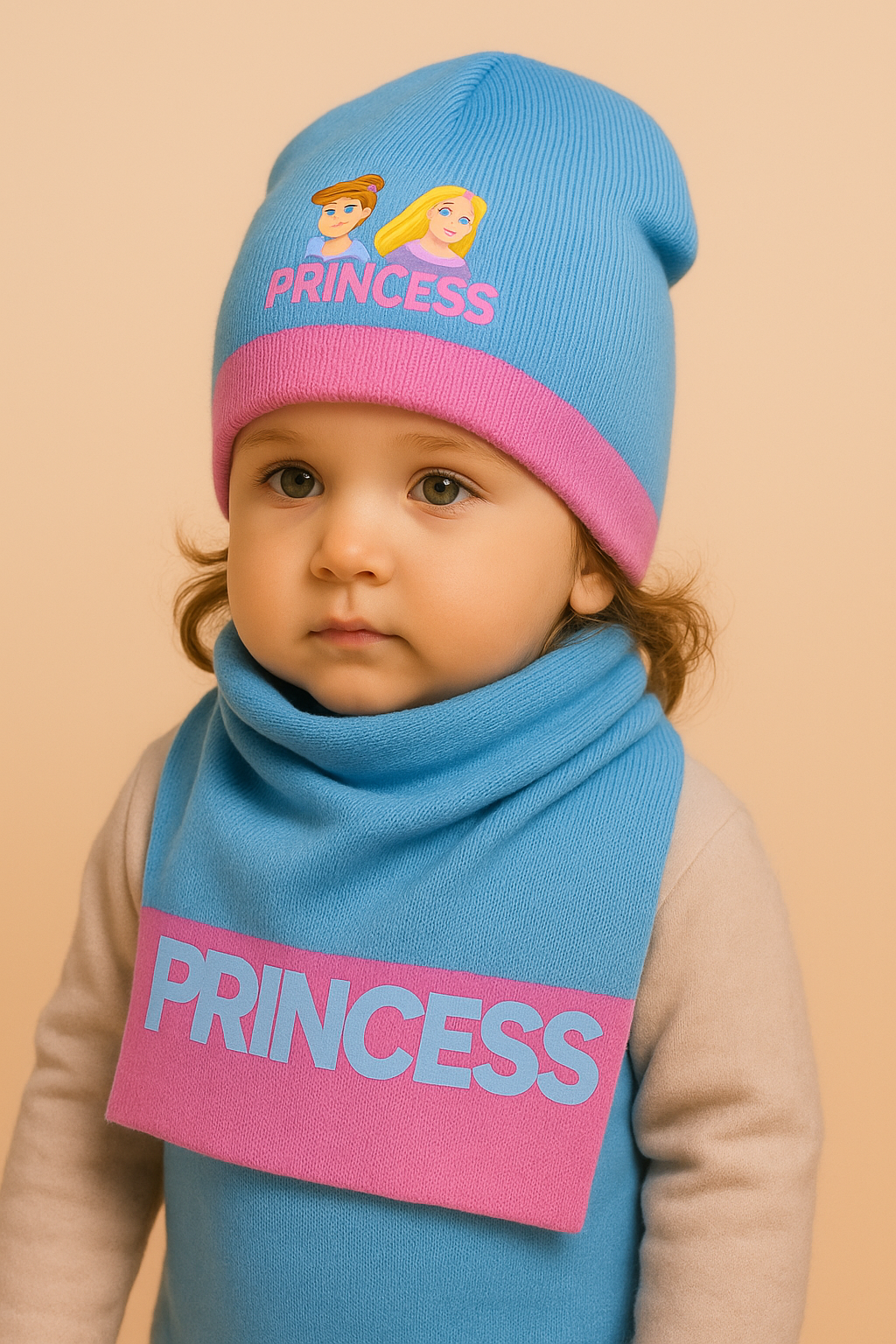 Set elegant pentru fetite, inspirat din universul Disney Princess. Include caciula si fular realizate din tricot premium, concepute pentru a oferi căldura si confort in zilele reci. Fiecare piesa este fabricata din fir acrilic 100%, moale, durabil si sigur pentru pielea sensibilă a copiilor.