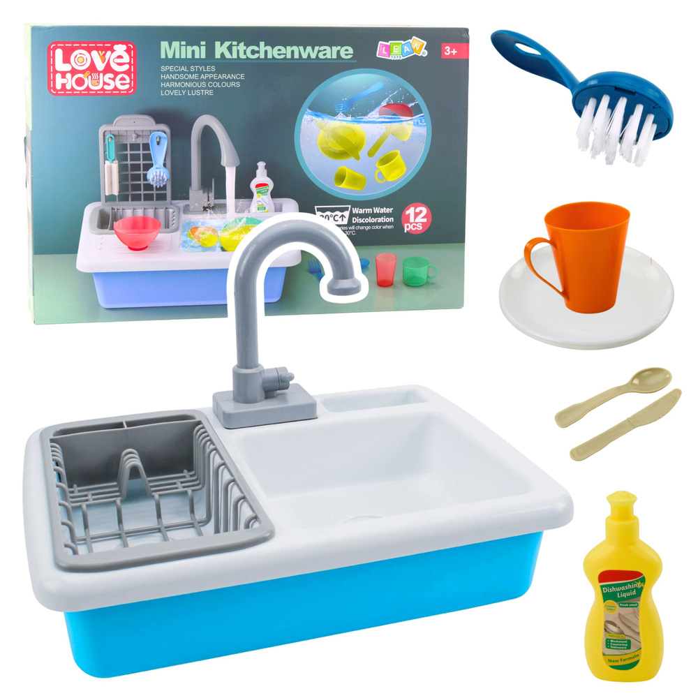 Setul Mini Kitchenware este o jucarie perfecta pentru copiii care adora jocurile de rol si vor sa imite activitatile de zi cu zi. Chiuveta are un sistem real de circulare a apei, astfel incat cei mici pot umple, turna si “spala” folosind un robinet functional, pentru o joaca mult mai realista si captivanta.