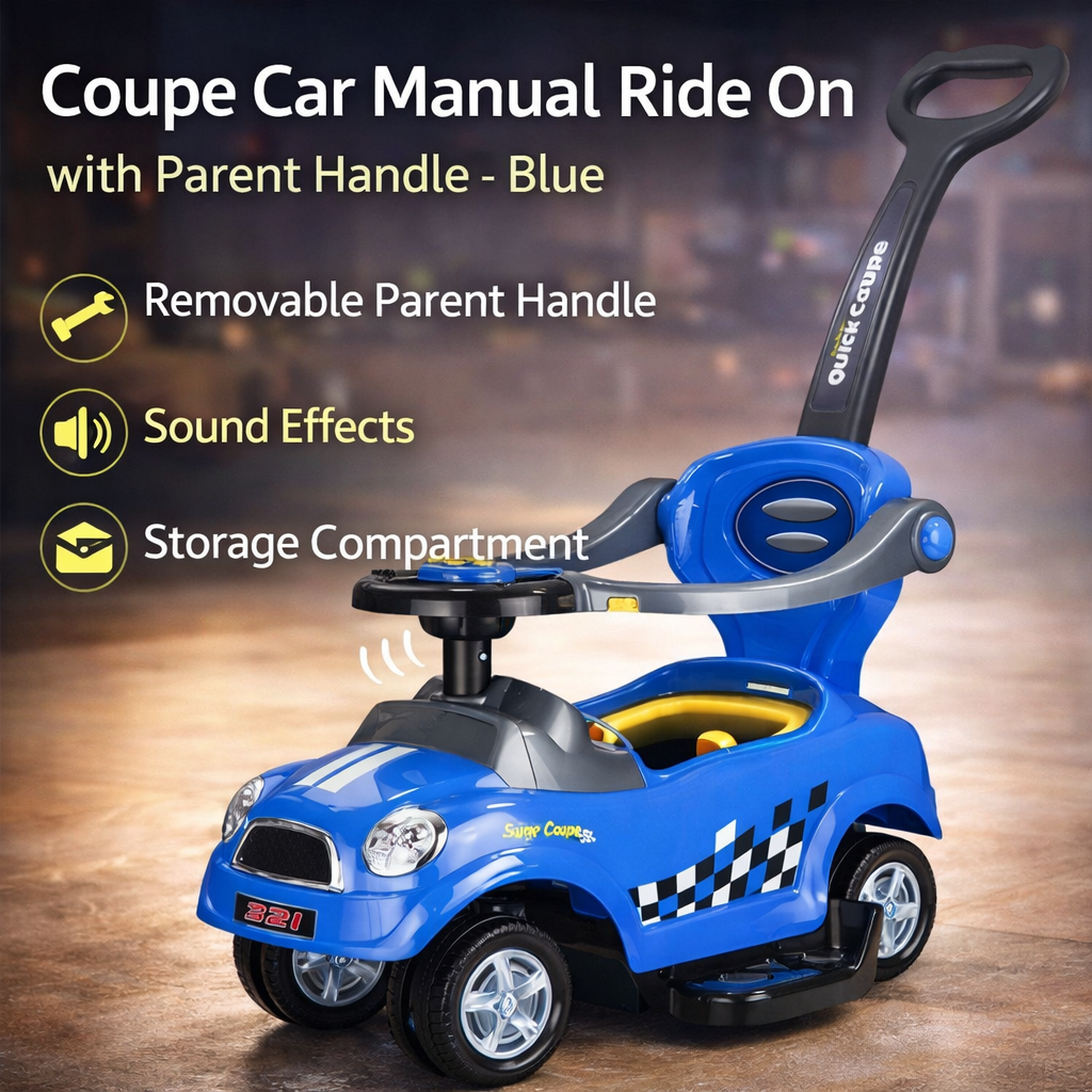 Masinuta Ride on manuala cu maner parental albastra a fost proiectata special pentru bebelusi si copii mici care au invatat deja sa stea in sezut si sa se tarasca, oferindu-le posibilitatea de a experimenta miscari puternice si repetitive ale picioarelor. Aceasta experienta noua contribuie la dezvoltarea naturala a coordonarii si mobilitatii copilului.