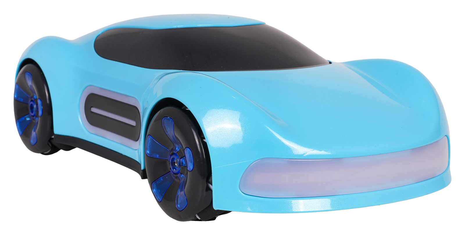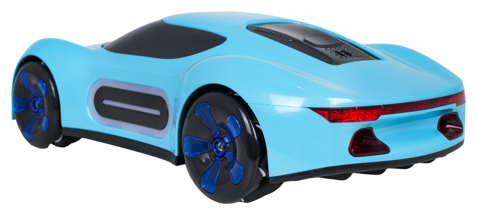 Masina functioneaza cu un acumulator reincarcabil de 3.7 V (inclus), telecomanda este alimentata cu baterii AA, iar ceasul cu baterii AAA (nu sunt incluse). Datorita efectelor luminoase, sonore si a functiilor de stunt, aceasta masina este perfecta pentru joaca dinamica si creativa.