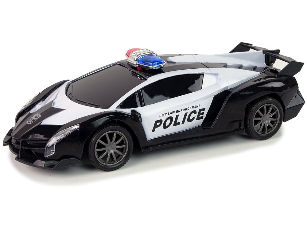 Masina este realizata la scara 1:16 si are un aspect sportiv, in culoare neagra, cu stil de masina de politie. Efectele luminoase adauga realism si fac jucaria mai atractiva in timpul jocului. Masina de patrulare este echipata cu lumini LED care se aprind in timpul functionarii.
