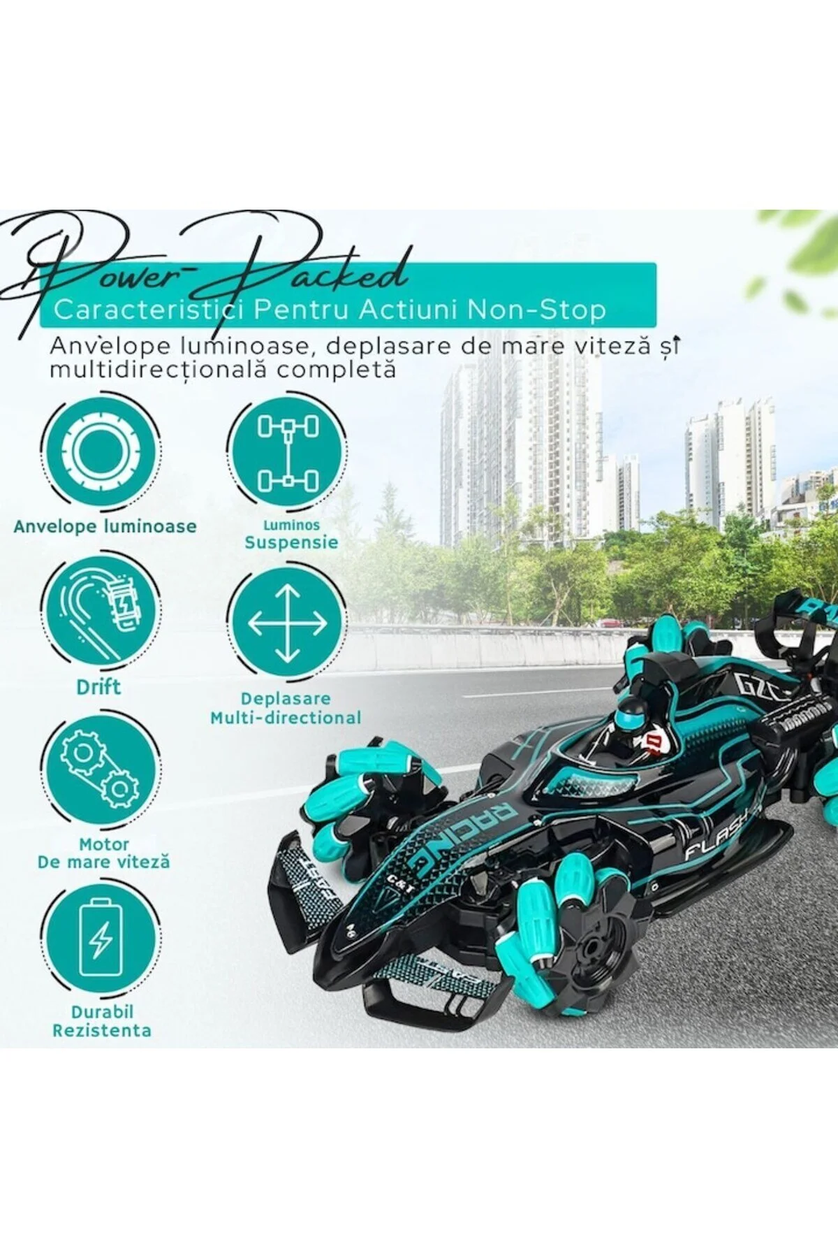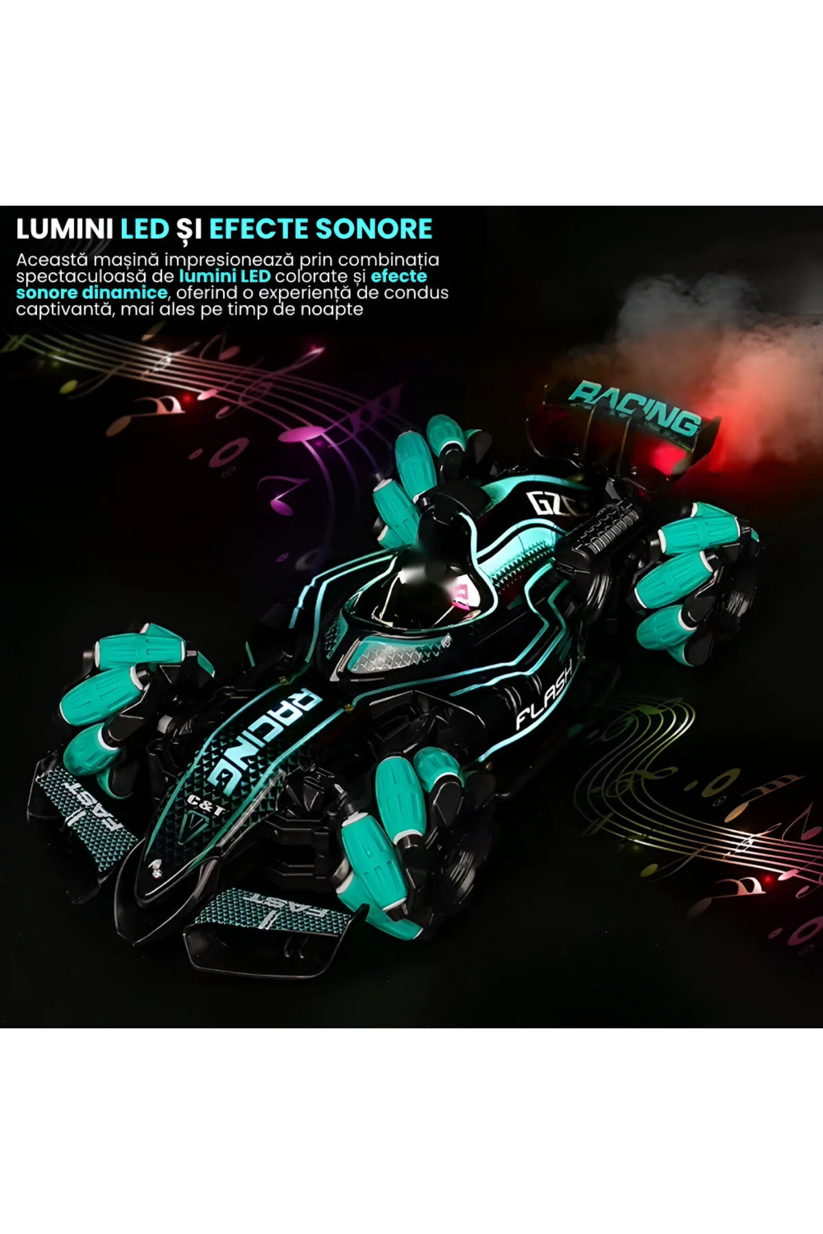 RACING CAR EQUATION RC transformă spațiul de joacă într-un circuit dinamic. Combinația dintre lumini LED, efect de abur și acrobații oferă o experiență completă de joacă, potrivită copiilor pasionați de viteză și tehnologie.