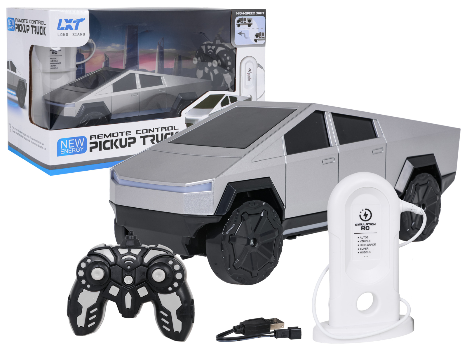 Masina este alimentata de un acumulator reincarcabil de 3.7 V, inclus in set, iar telecomanda functioneaza pe frecventa de 2.4 GHz, asigurand control precis si fara interferente. Setul include si o statie de incarcare care simuleaza procesul real de alimentare, adaugand un plus de realism jocului.