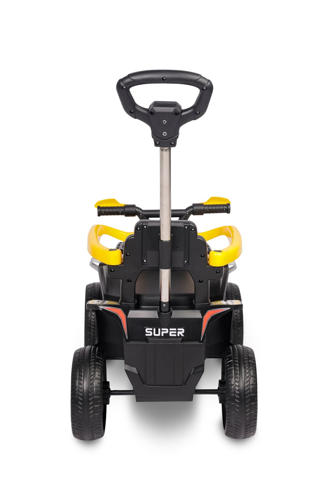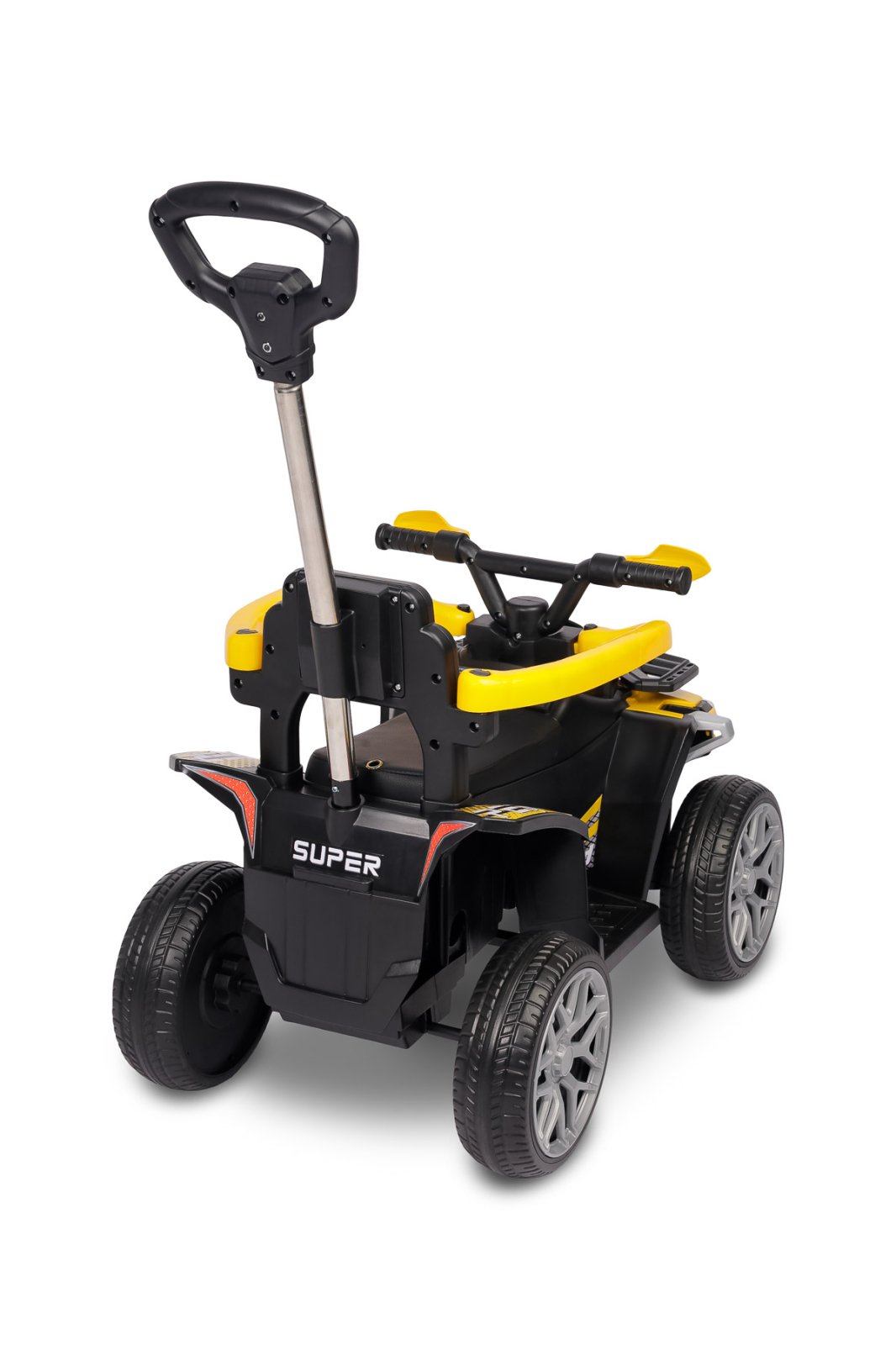 Ride-on-ul este echipat cu un ghidon metalic solid, oferindu-le părinților control complet asupra vehiculului în timpul plimbărilor sau în perioada de învățare a mersului. Construcția metalică este mult mai durabilă și mai stabilă decât variantele din plastic. Ghidonul poate fi îndepărtat cu ușurință, transformând ride-on-ul într-un vehicul independent pentru copiii mai mari.