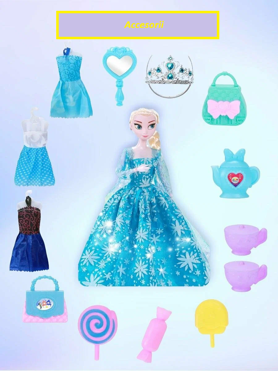 Setul Papusa si Accesorii aduce in viata fetitelor bucurie, imaginatie si ore intregi de joaca creativa. Papusa cu zambet prietenos si ochi mari inspira caldura si prietenie, iar materialele non-toxice garanteaza siguranta in fiecare moment al jocului.