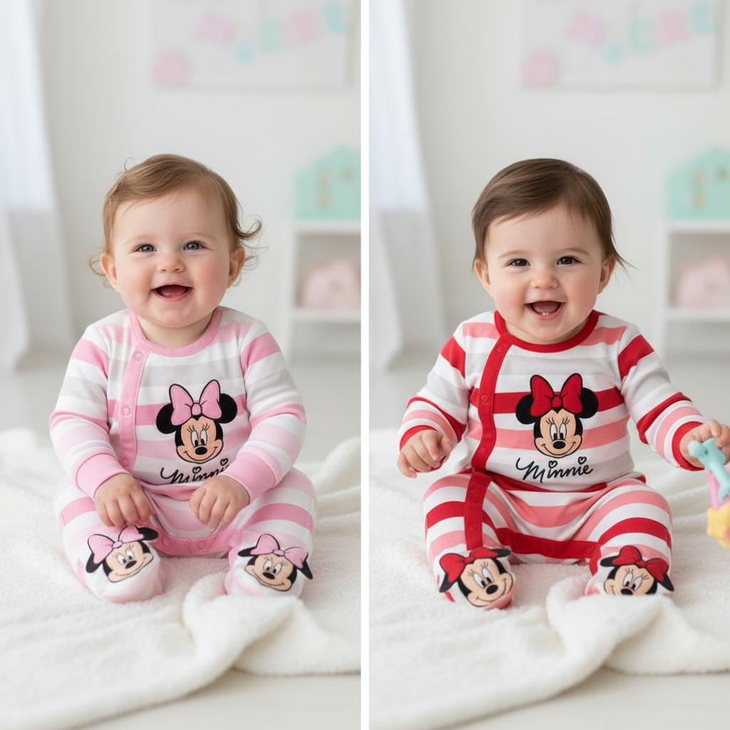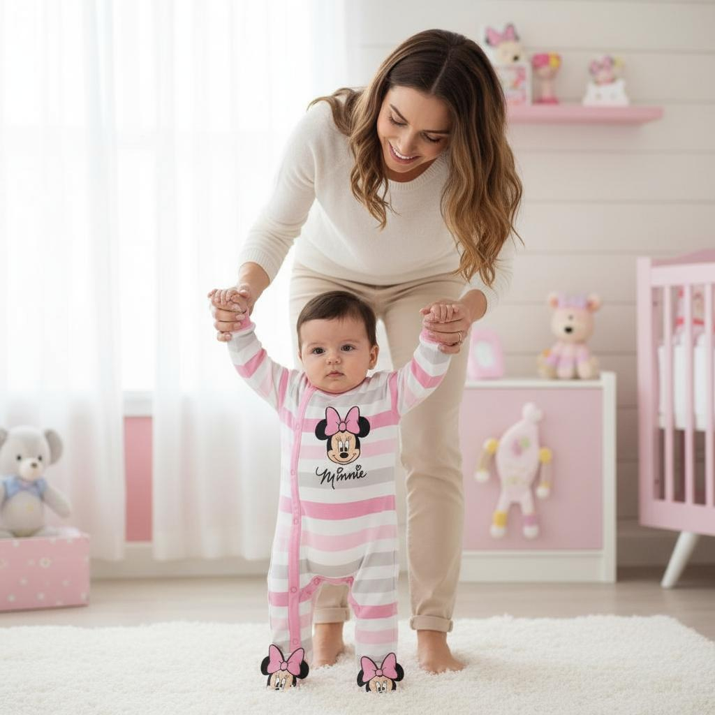 Salopeta Happy Minnie este alegerea perfectă pentru mămicile care își doresc haine comode, sigure și pline de farmec pentru fetițele lor. Cu imprimeu original Disney și un croi practic, este ideală pentru joacă, somn sau plimbări în confort deplin.