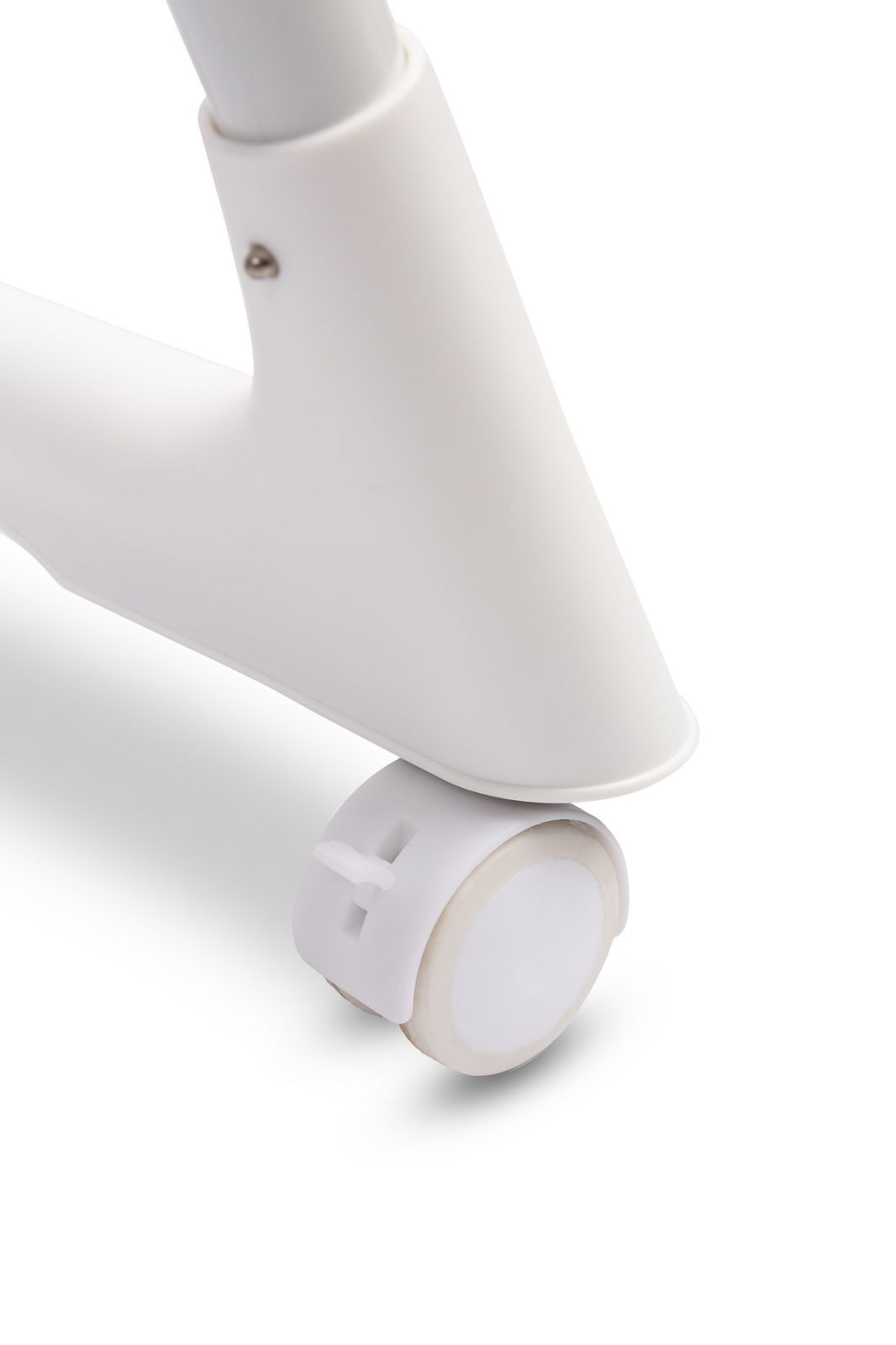 Scaunul cantareste doar 6 kg, fiind simplu de mutat. Rotile cauciucate cu blocare permit deplasarea lina fara risc de deteriorare a podelei. Mecanismul intuitiv de pliere face ca scaunul sa ocupe un spatiu minim dupa pliere, fiind potrivit si pentru locuinte mai mici.