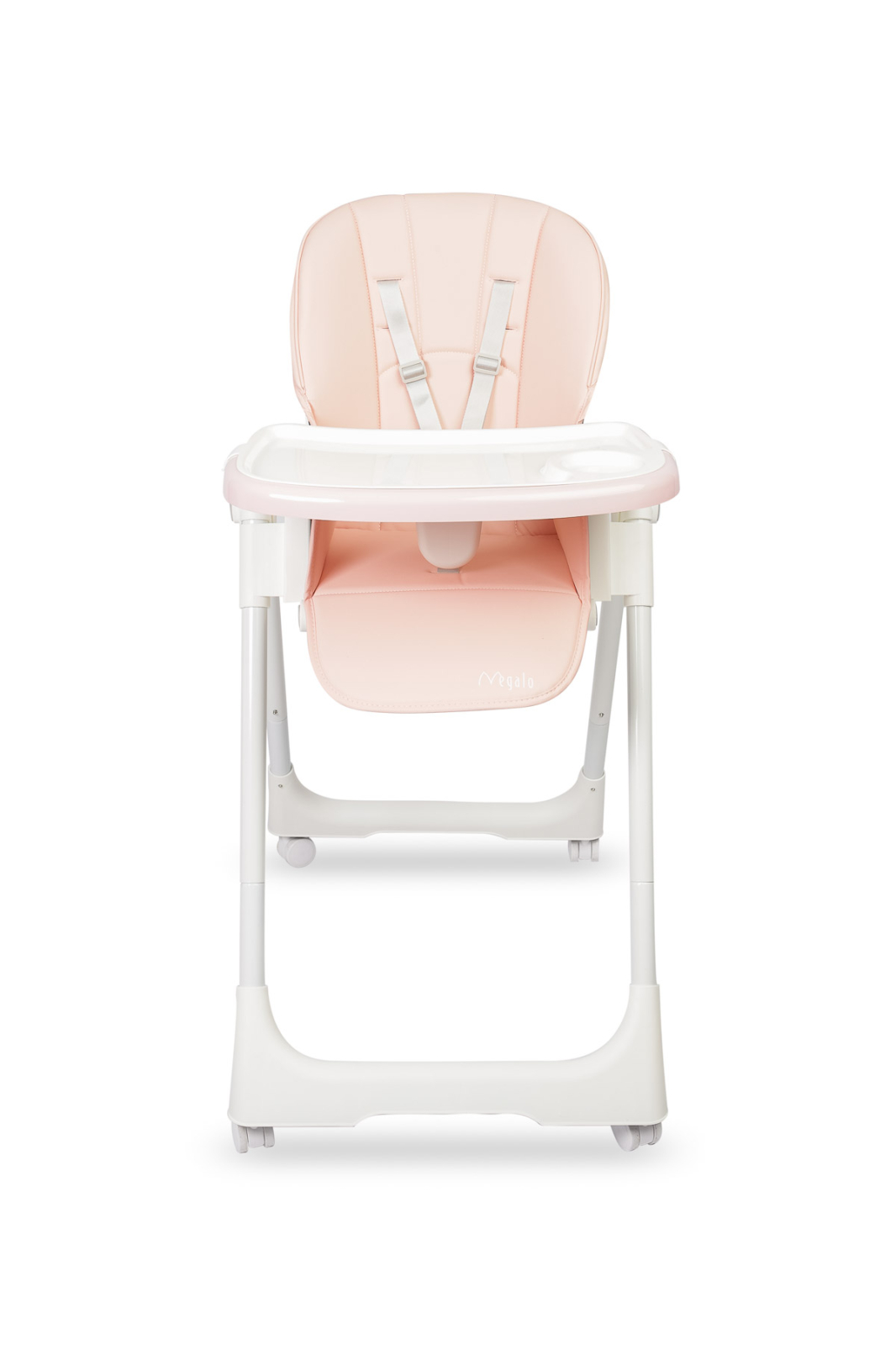 Scaunul de hranire pliabil Megalo este usor si confortabil. Greutatea redusa si posibilitatea de pliere la dimensiuni compacte reprezinta punctele forte ale produsului. Sezutul spatios cu tava reglabila si centurile de siguranta asigura o hranire confortabila. Tapiteria din piele ecologica este usor de indepartat si curatat. Reglajul pe inaltime permite alegerea pozitiei optime, iar rotile cauciucate cu blocare faciliteaza deplasarea fara a deteriora podeaua.