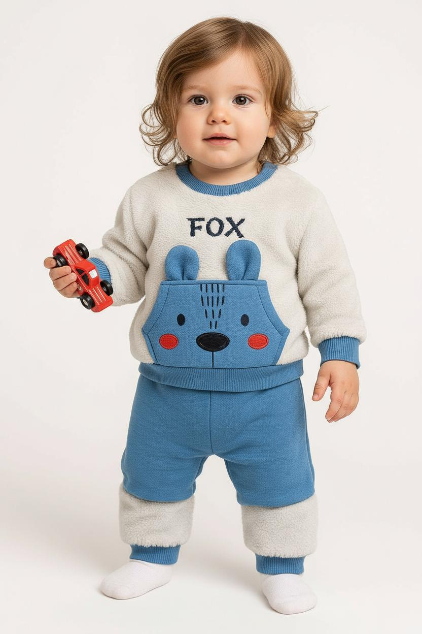 Bluza are un design adorabil, cu aplicatie in relief si detalii brodate, reprezentand un animalut simpatic. Textura pufoasa a bluzei adauga un plus de confort termic, perfecta pentru sezonul rece sau pentru zile mai racoroase. Mansetele elastice la maneci si la baza bluzei mentin forma si permit imbracarea usoara.