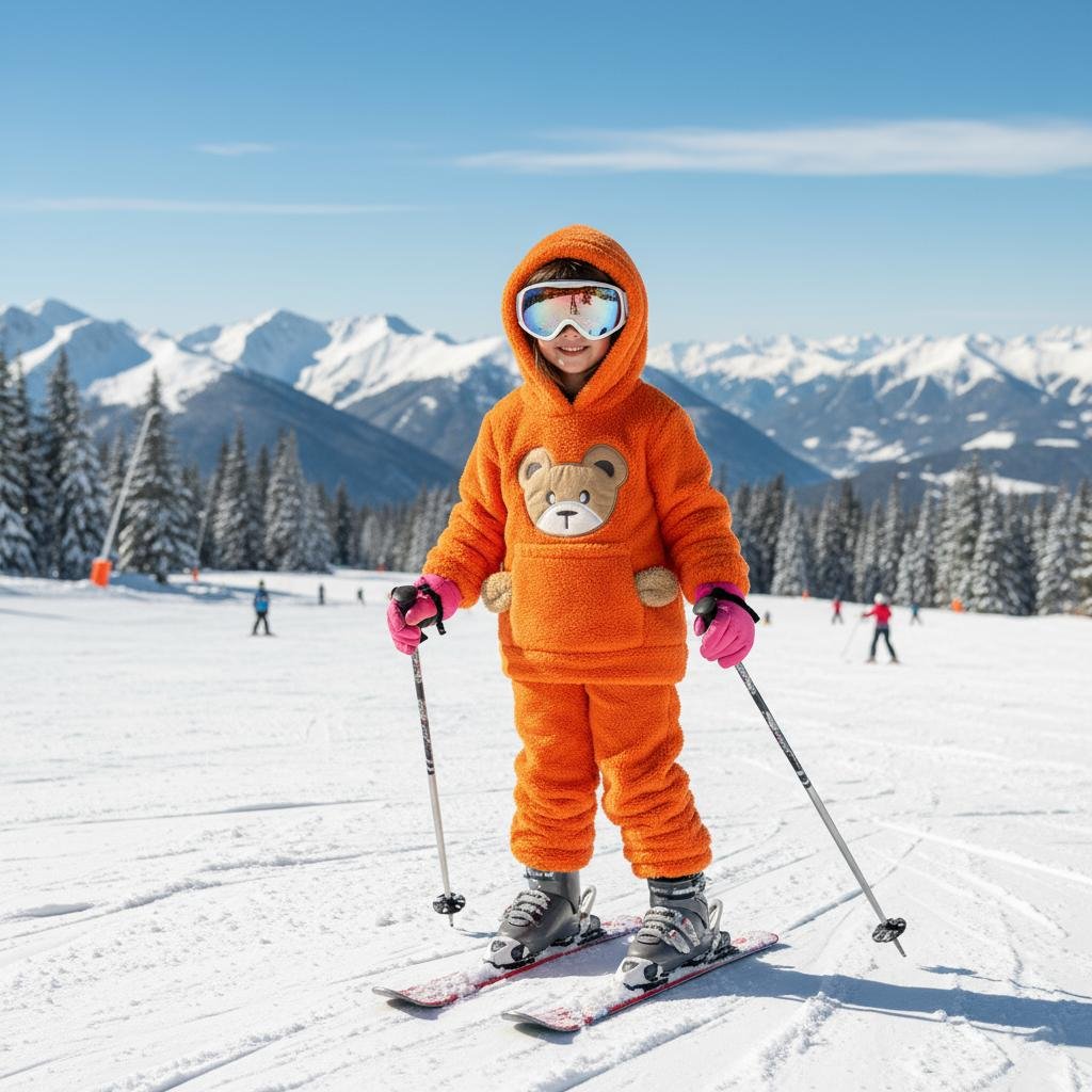 Bluza are glugă și buzunar frontal tip cangur, decorat cu un ursuleț 3D super simpatic — detaliu care face micuțul să arate irezistibil!