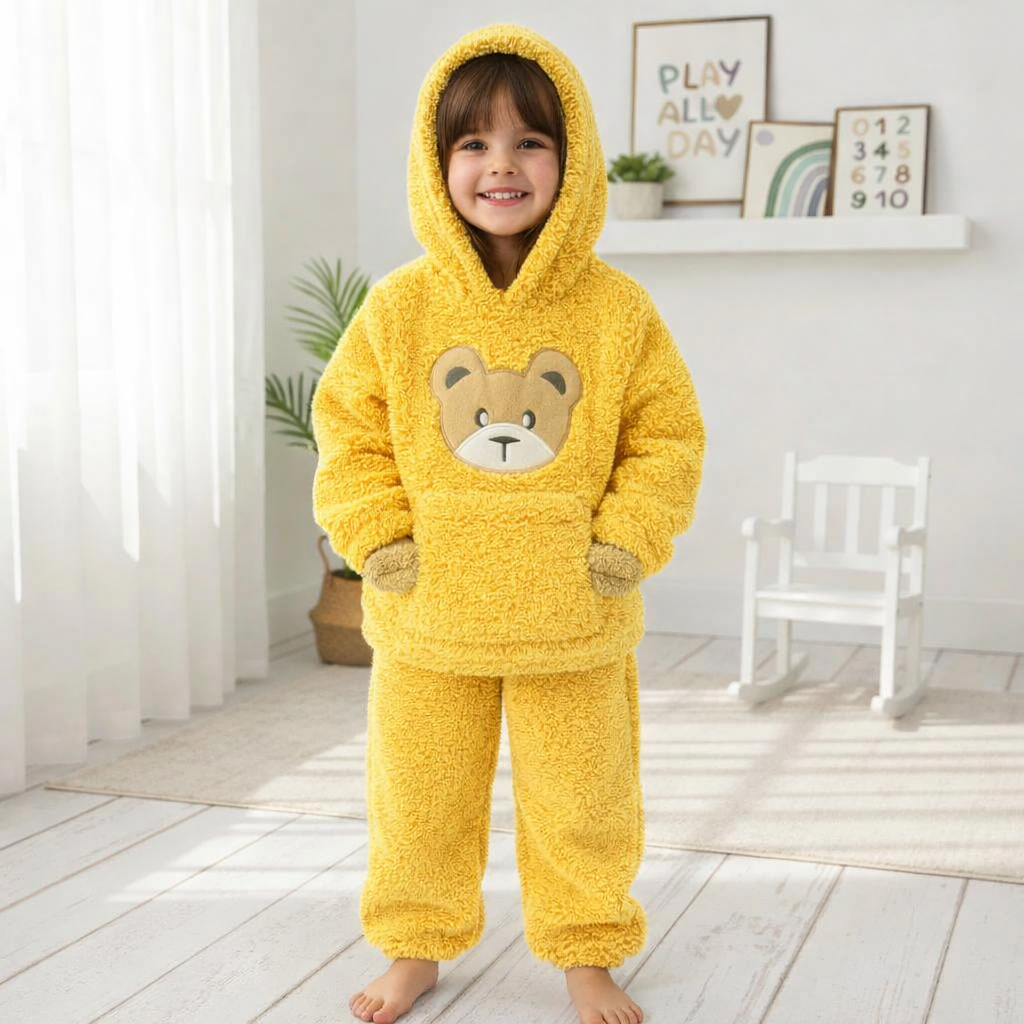 Set bluza si pantaloni Welsoft cu Ursuleț și Glugă – Super Moale, Cald și Pufos
