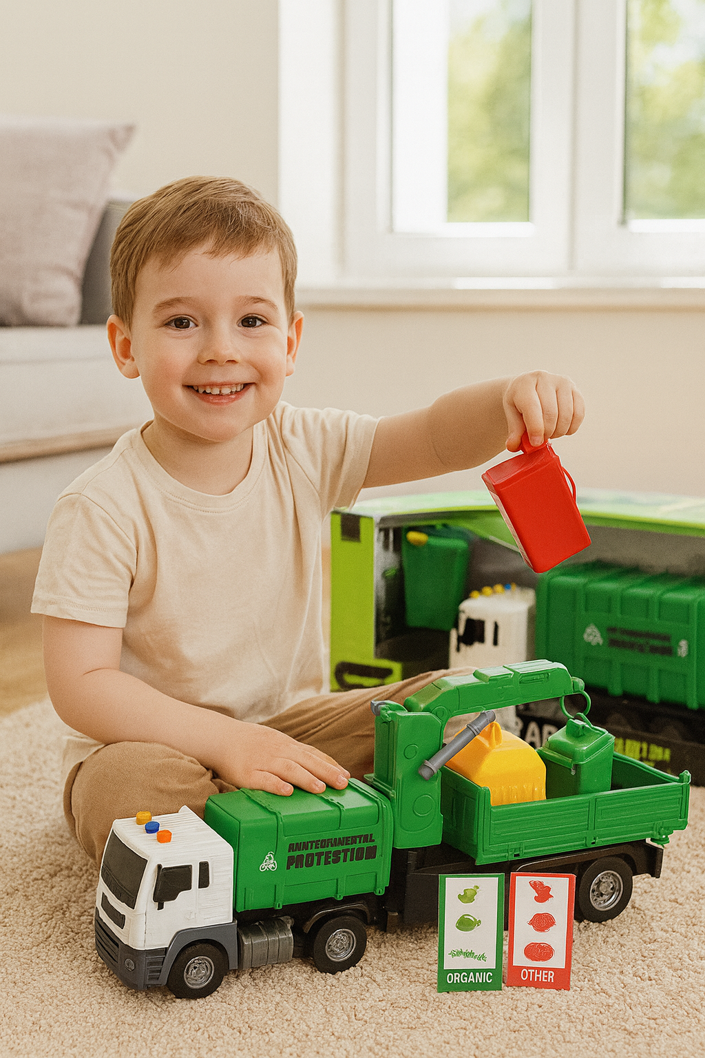 Creat pentru copiii curiosi, pasionati de vehicule si de lumea utilitara, acest camion ii ajuta pe cei mici sa descopere, intr-un mod simplu si distractiv, ce inseamna colectarea selectiva si ingrijirea mediului. Parintii il aleg pentru calitatea materialelor, iar copiii pentru functiile interactive si dimensiunile impresionante.