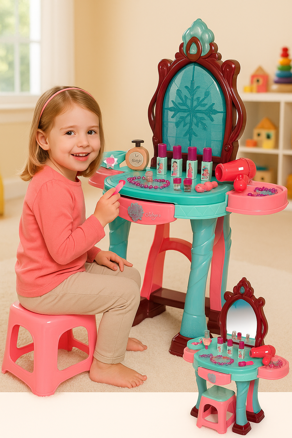 Surprinde-ți fetița cu o adevărată masă de toaletă de poveste! Un loc magic unde imaginația prinde viață și pregătirea devine o joacă încântătoare.