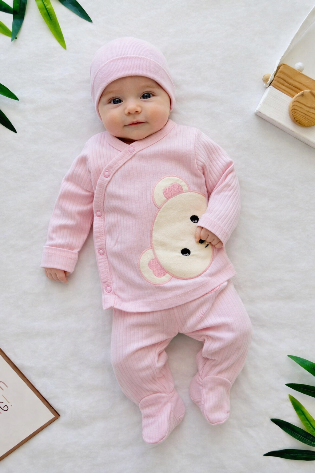 Descoperiti confortul suprem pentru bebelusul dumneavoastra cu acest set adorabil, perfect pentru primele luni de viata. Setul este realizat din bumbac moale si delicat, oferind o senzatie placuta la atingere si fiind ideal pentru pielea sensibila a bebelusilor.