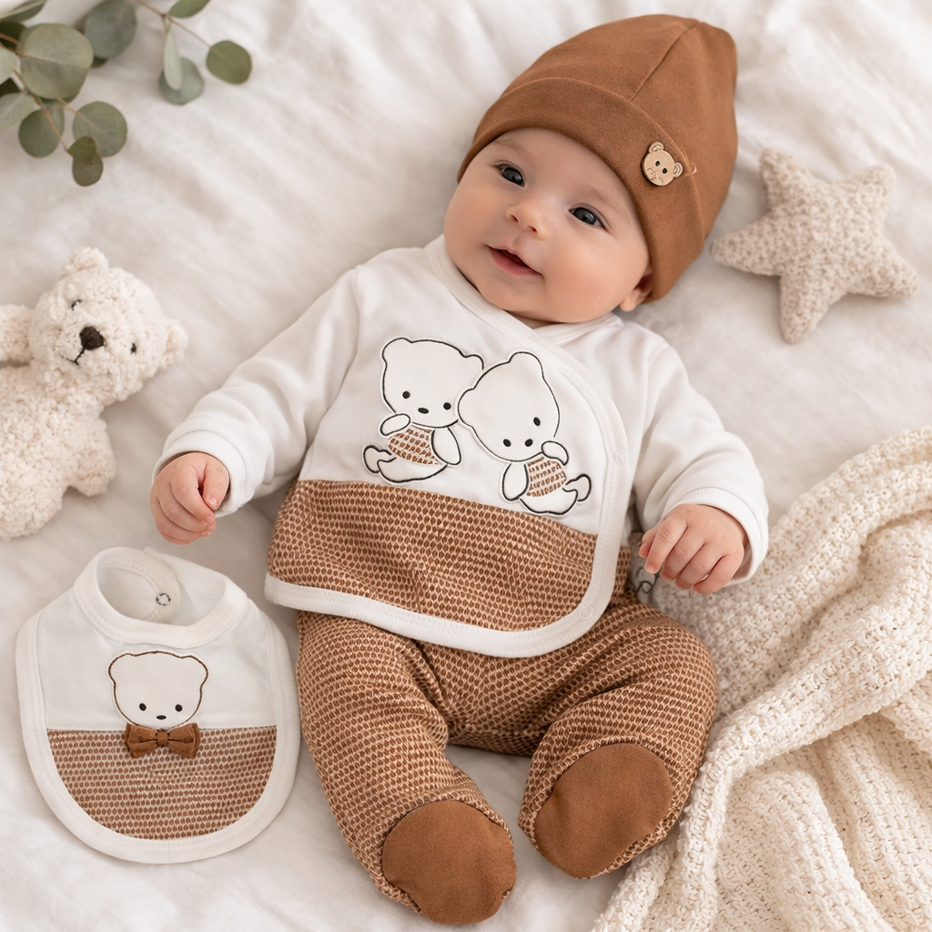 BEBELUL Set 5 piese pentru nou nascuti, model cu Ursuleti MARO