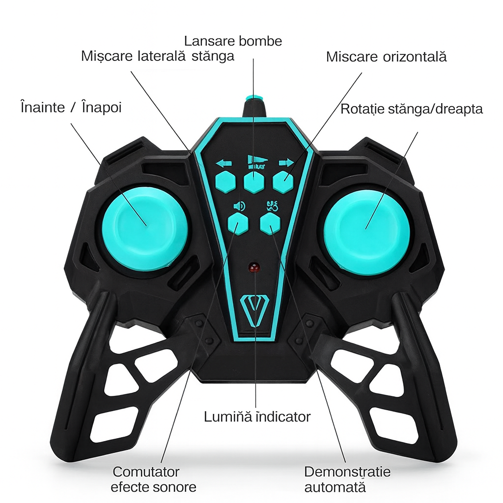 Telecomandă 2.4 GHz, cu butoane mari și control precis, fără interferențe.