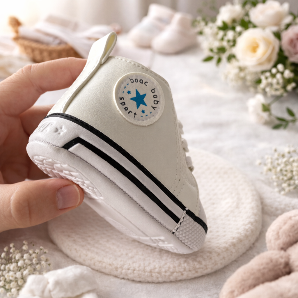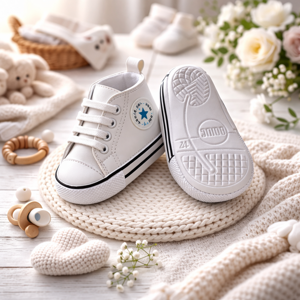 Talpa este moale si flexibila, ideala pentru primii pasi, oferind sustinere usoara fara a incomoda miscarea naturala a piciorului. Designul ergonomic ajuta la dezvoltarea corecta a mersului.